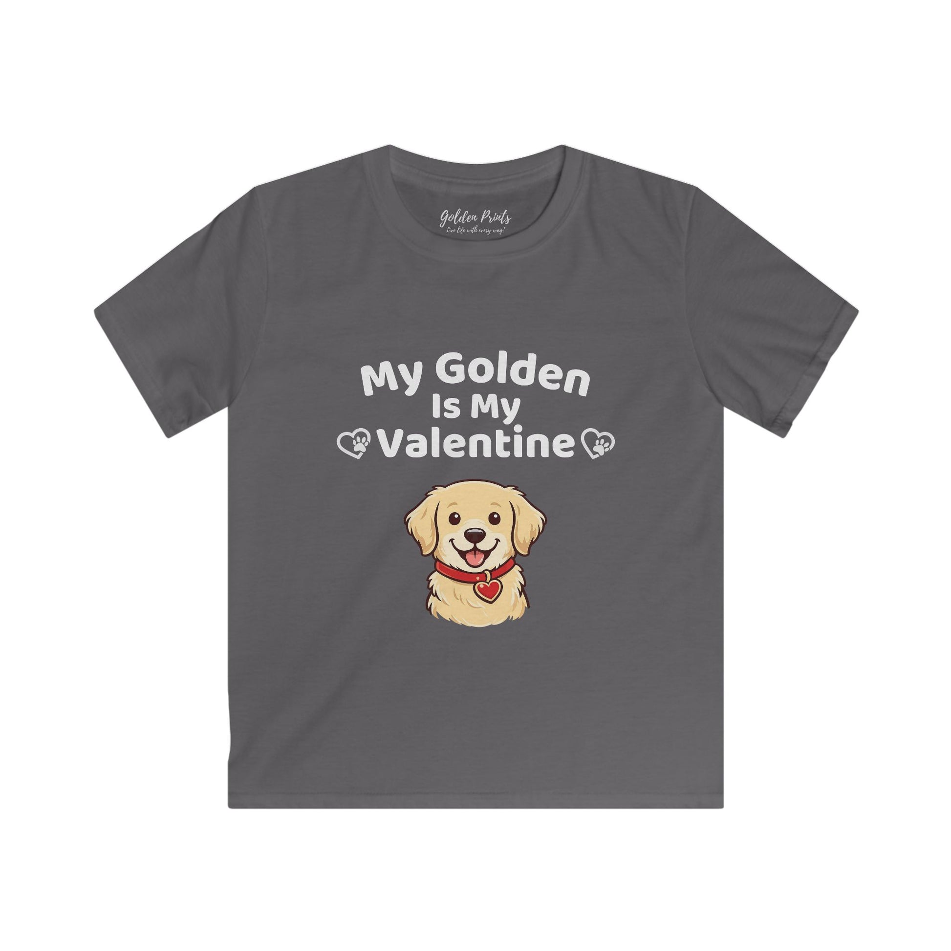 Soft, lightweight, and full of puppy love, this kids' T-shirt features a cheerful golden retriever front and center with the playful message “My Golden Is My Valentine.” Designed for comfort and movement, the smooth ring-spun cotton feels gentle on sensitive skin while the classic fit makes it perfect for everyday wear.